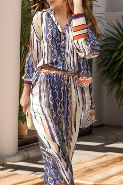 Printed Lantern Sleeve Top and Wide Leg Pants Set